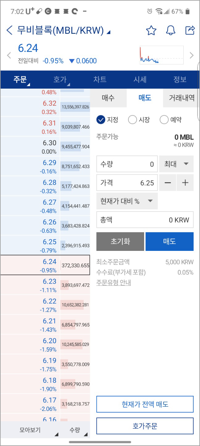 이제 입금받은 MBL 코인을 매도하는 과정이 남았네요.