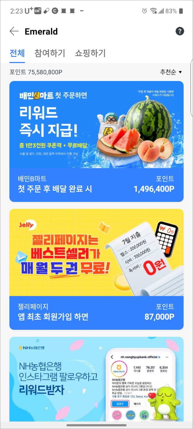 물론 포인트를 많이 모으려면 회원가입 미션을 몇 개 하는 것이 유리하긴 합니다.