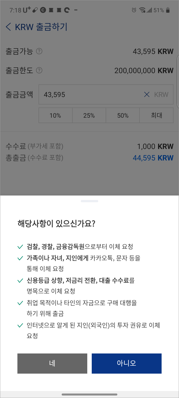 7. 케이뱅크 외에 평소 사용하는 다른 은행 계좌로 본인인증