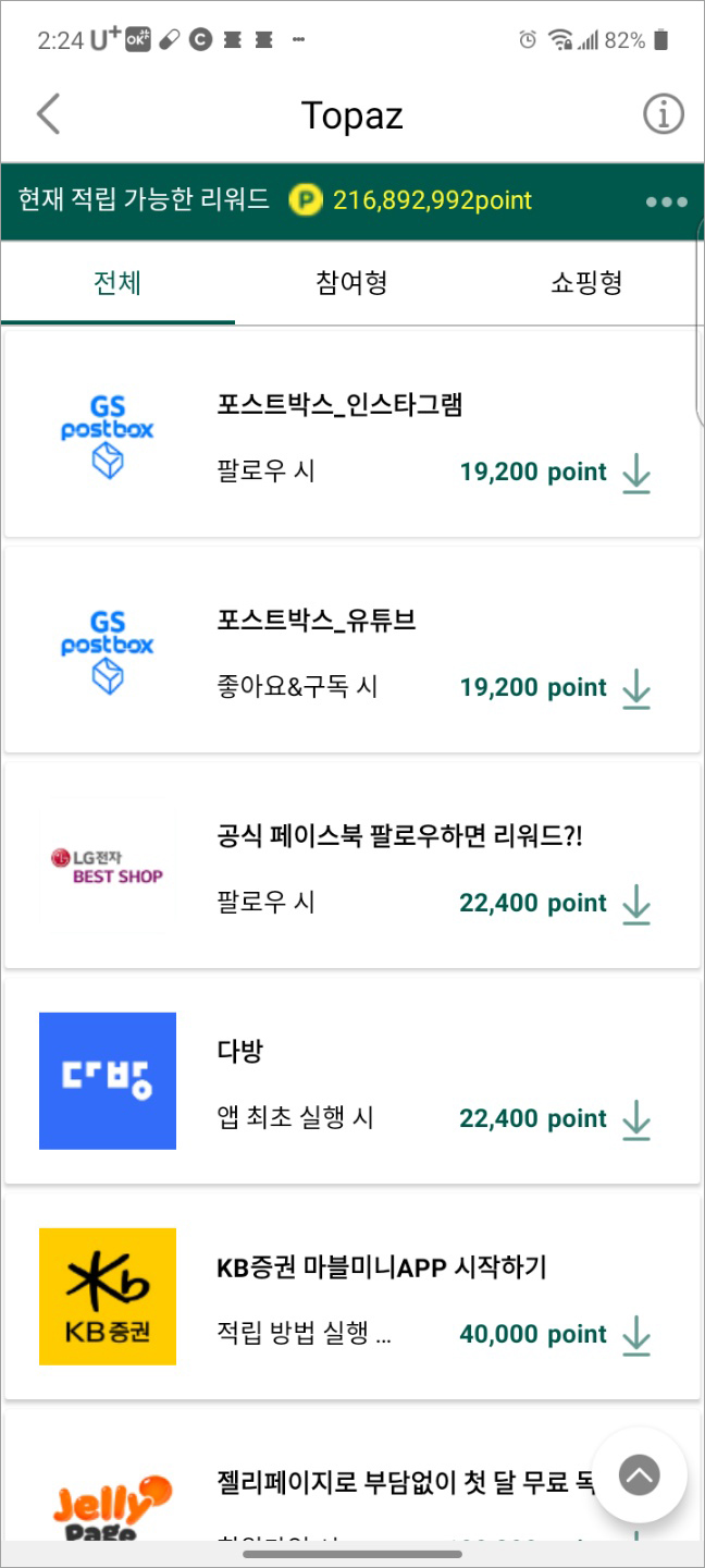 물론 처음에는 내가 할 수 있는 미션들이 많아서 포인트가 빨리 쌓이지만, 시간이 갈수록 같은 것들만 계속 나오고 내가 할 수 있는 것들은 점점 줄어들 거에요.
