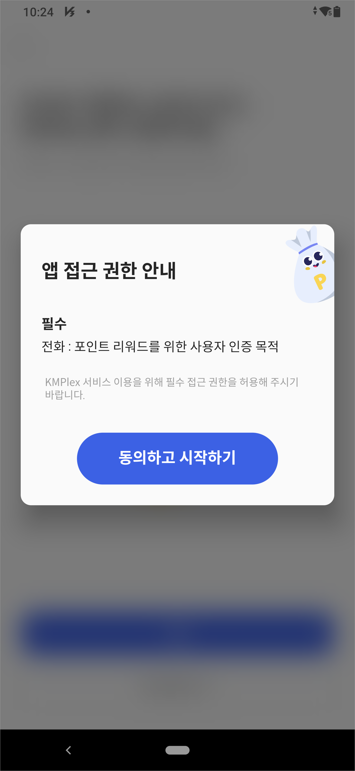 [다음]을 누르면, 앱 접근 권한 안내가 나와요. [동의하고 시작하기]를 누르세요.