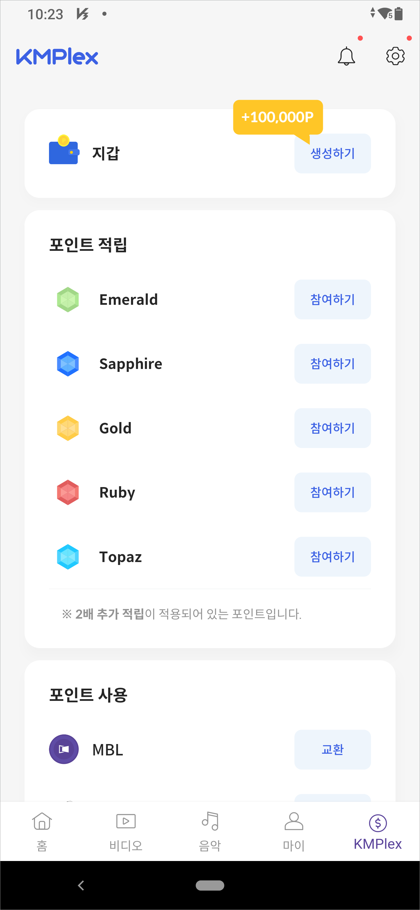 여기까지 작업을 완료하면, 바로 100,000p가 들어오게 됩니다.