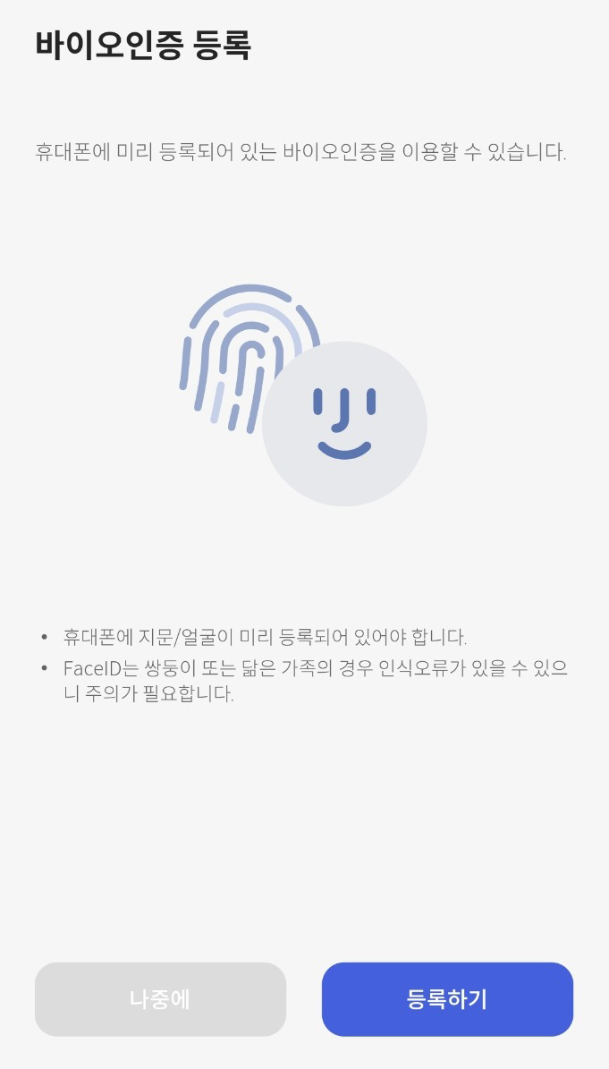 셋째, 바이오인증 등록